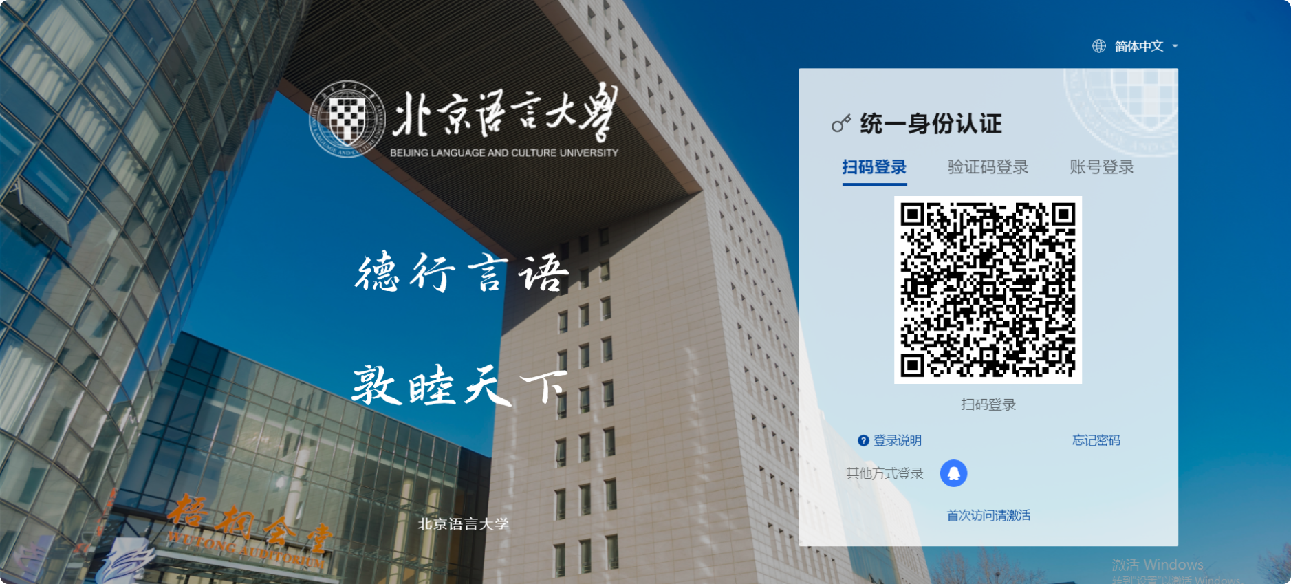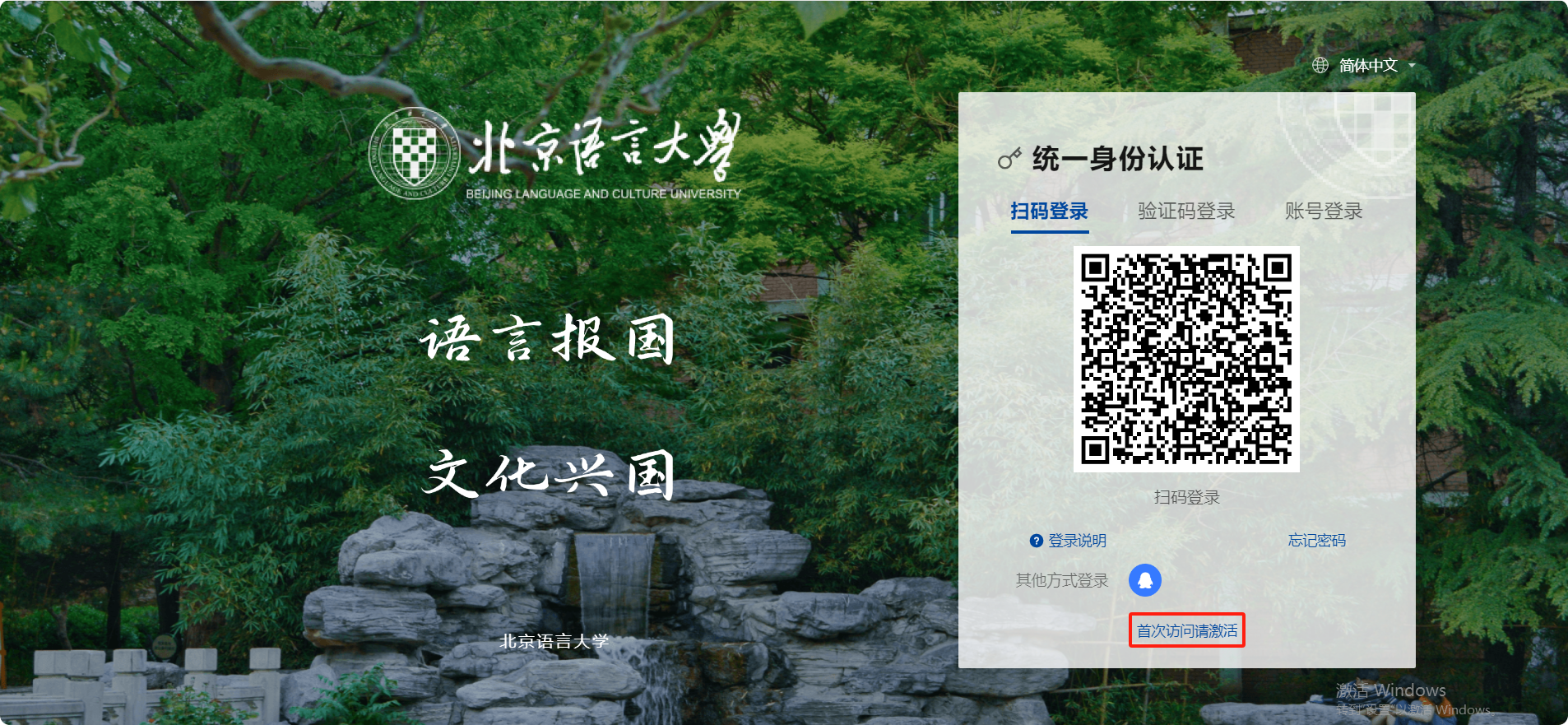新生和新进教职工首次访问,请点击 首次访问请激活按钮