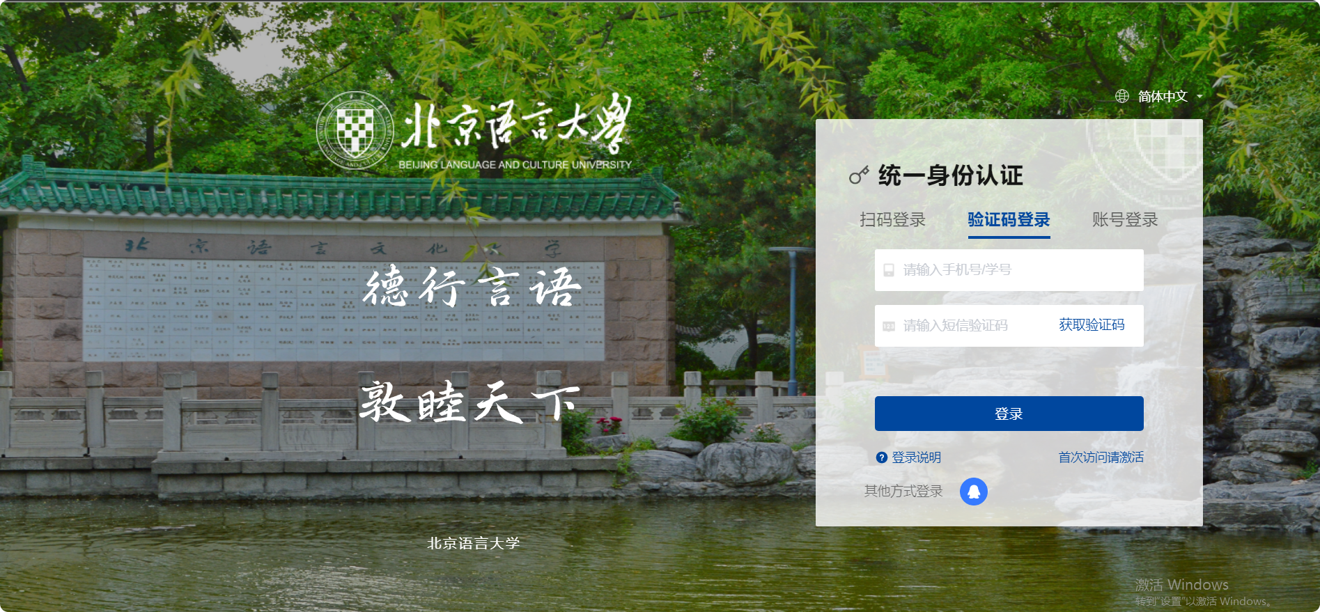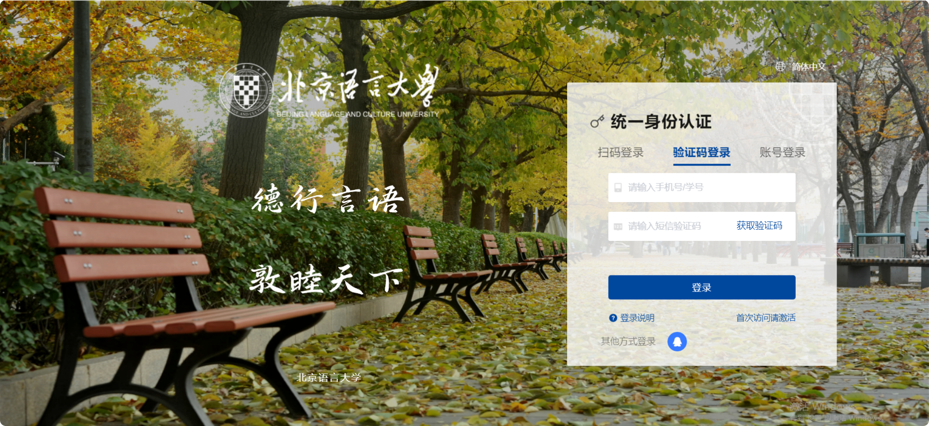 新生和新入职教职工(8月12日后入校或入职)点击登录页面“首次访问请激活”,激活过程中绑定手机、设置个人登录密码,激活步骤详见