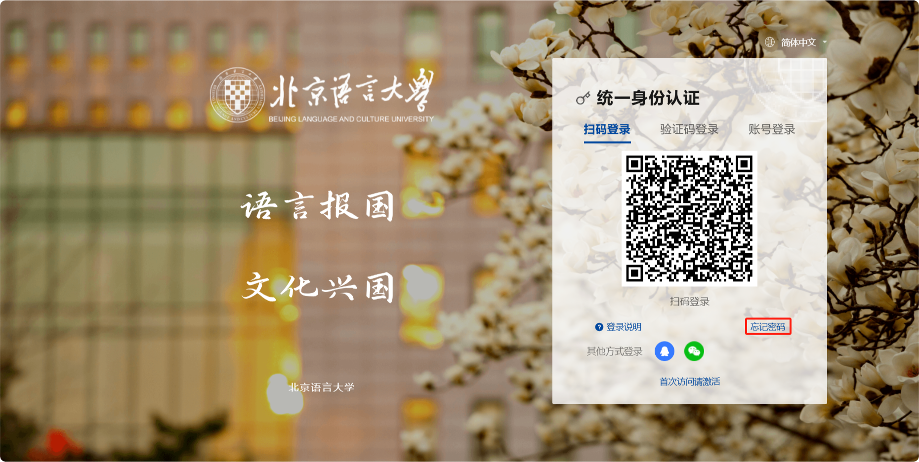 已有数字北语账号,登陆密码不变。为保障您的账号信息安全,系统将进行密码强度检测,不符合安全要求时,请根据系统弹窗完成密码修改,