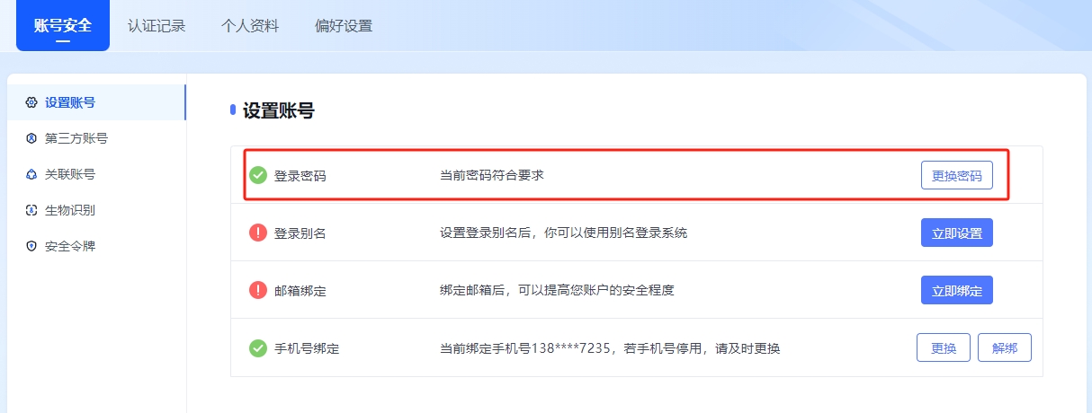 电脑端:登录数字平台,依次点击【右上角头像】—【个人中心】—【账号安全】—【设置账号】—【手机号绑定】;