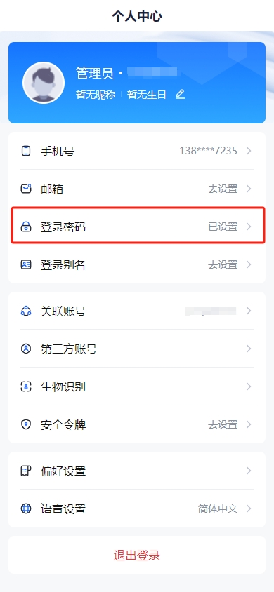 手机端:打开【北京语言大学企业号】,进入【统一身份认证】应用,点击下方【帐号设置】—【手机号绑定】、【邮箱绑定】;